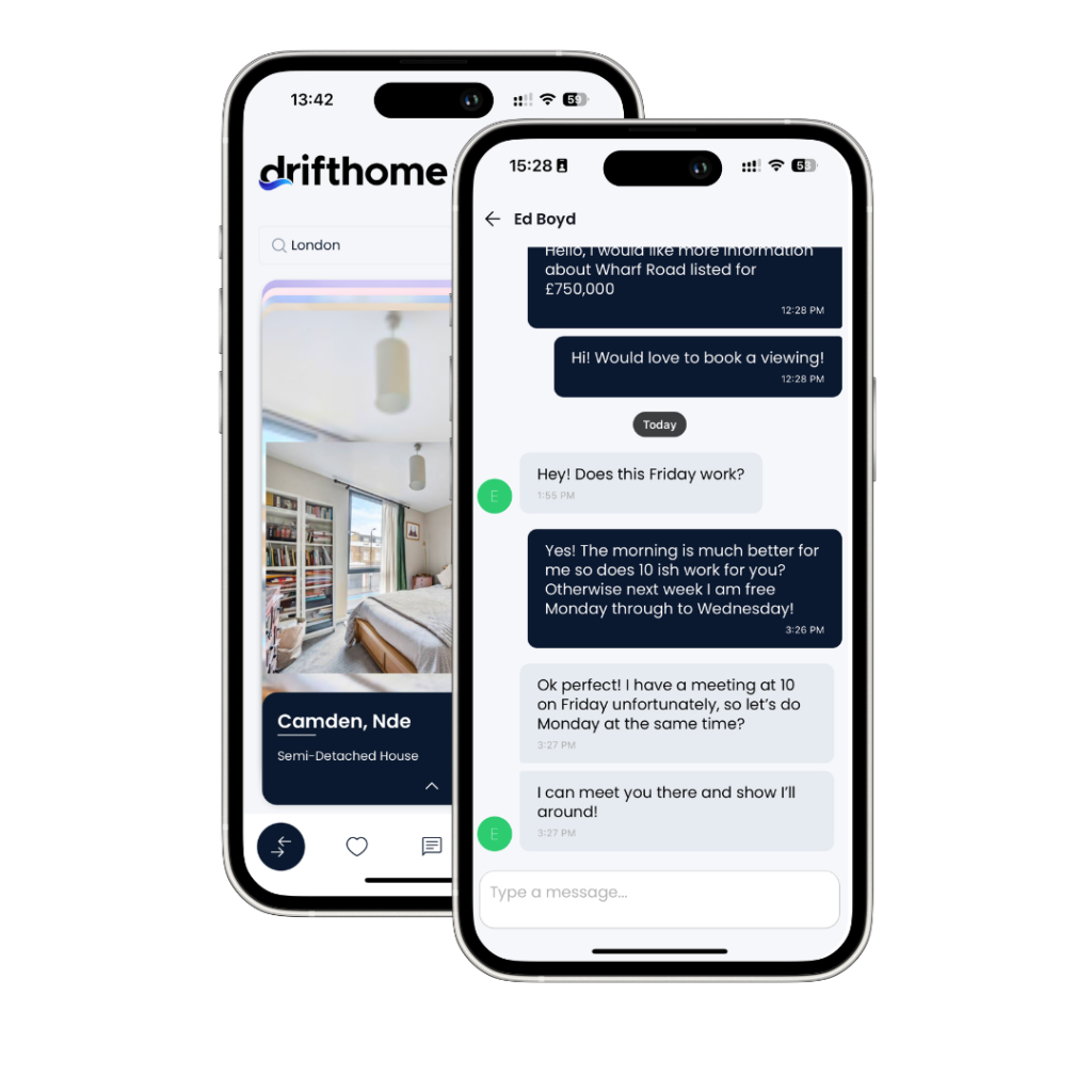 Not only can users browse properties like they would on other portals, on drifthome you can find buyers looking exactly for your new instruction. Simply input some quick details about your property and message buyers in the app to arrange a viewing. Get leads before your property is even on the market.